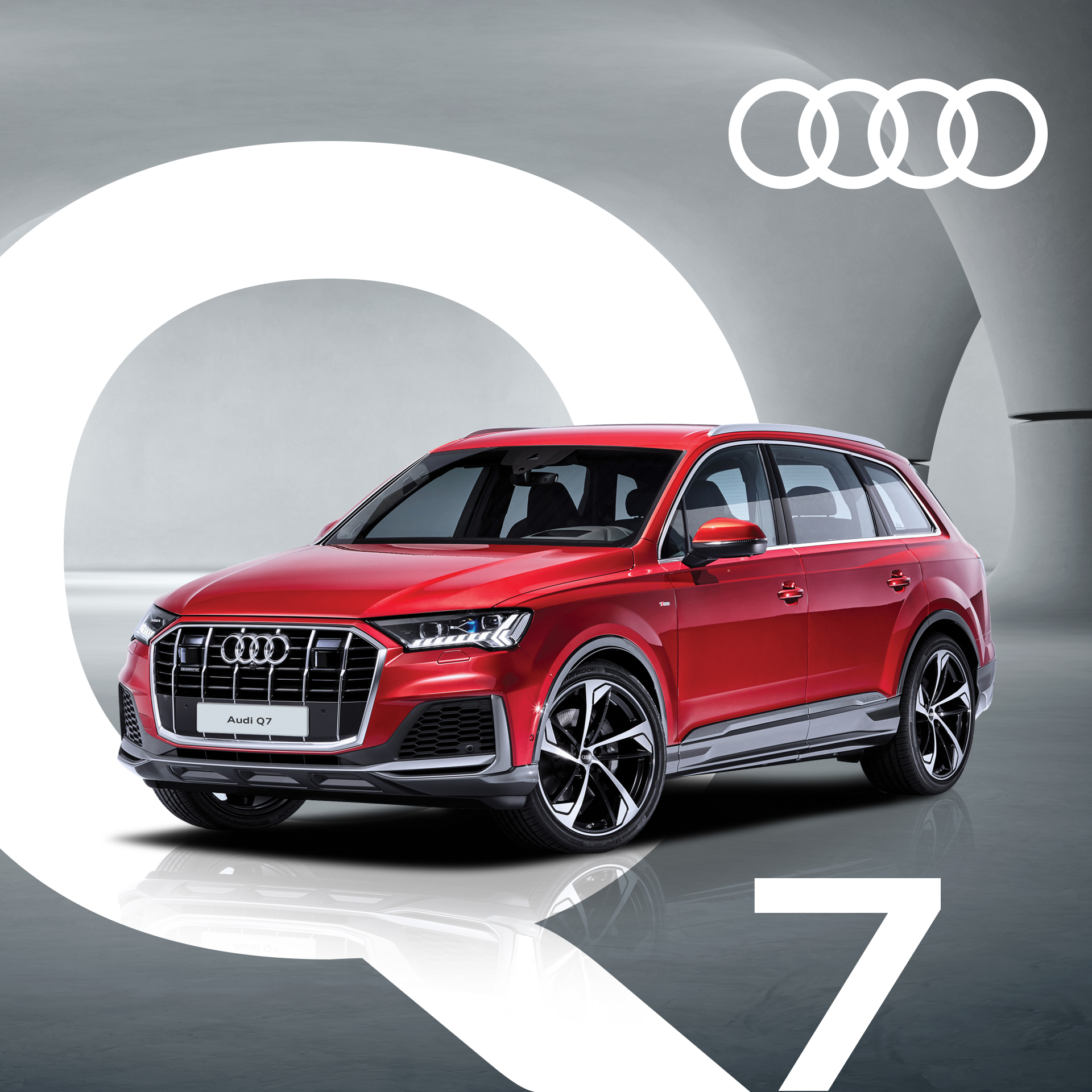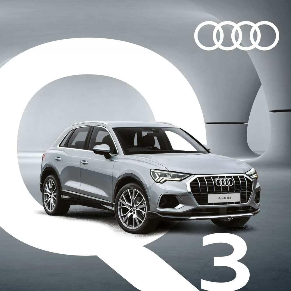 Audi Q-series SUV full line-up is on display at Audi Taikoo Shing Flagship showroom, including the stylish and practical Audi Q3, the luxurious 7-seater Audi Q7 S-line and the flagship model Audi Q8.
