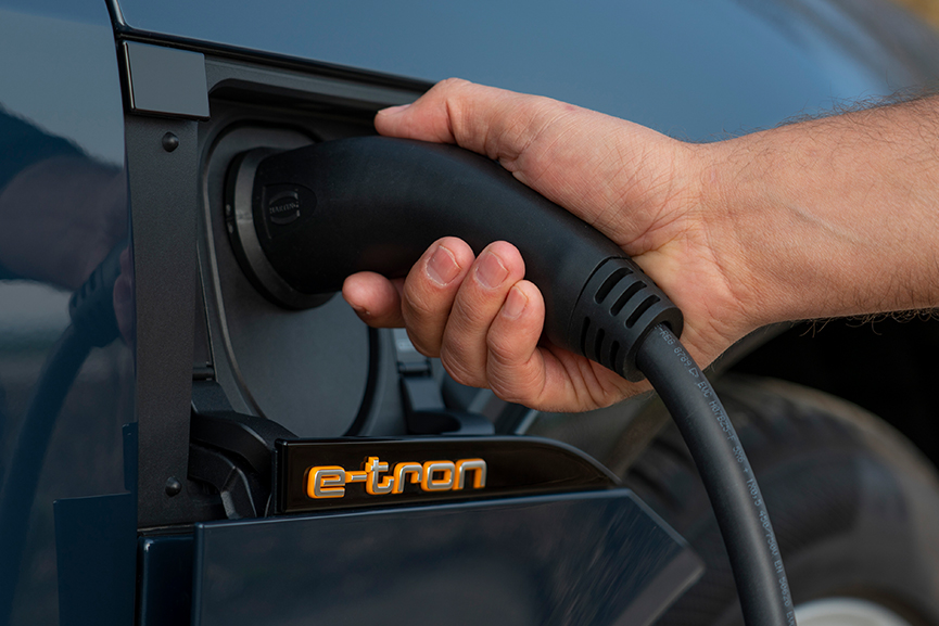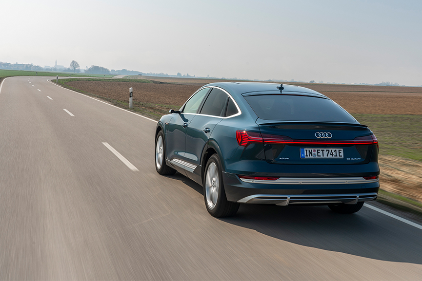 The new Audi e-tron Sportback combines the impressive exterior design, power of a spacious SUV with the elegance of a four-door coupé, as well as the sporty efficiency by the dual electric motors, quattro all-wheel drive and suspension.